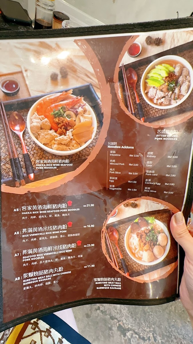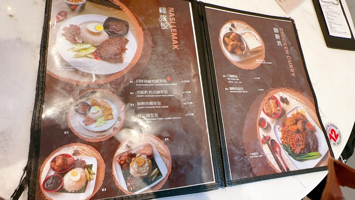 From a reviewer’s perspective, the menu at Eat Full Noodles Restaurant offers a concise yet satisfying selection that highlights both traditional and fusion flavors. Signature dishes like 传统黄酒猪肉粉 Traditional Pork Noodles and 海鲜猪肉粉 Seafood Pork Noodle stand out for their comforting, hearty appeal, while rice lovers will appreciate options such as the 招牌辣椒鸡椰浆饭 Signature Spicy Chicken Nasi Lemak and the indulgent 香脆炸鸡扒椰浆饭 Crispy Chicken Chop Nasi Lemak, both delivering a flavorful twist on a classic favorite. The inclusion of Nyonya Curry Laksa 咖喱面 adds a rich, aromatic choice for those craving something spicier and more robust. Although specific prices are not listed, the menu’s focus on well-loved staples with a slight creative edge makes it feel both accessible and thoughtfully curated, leaving a positive final impression of variety and quality.